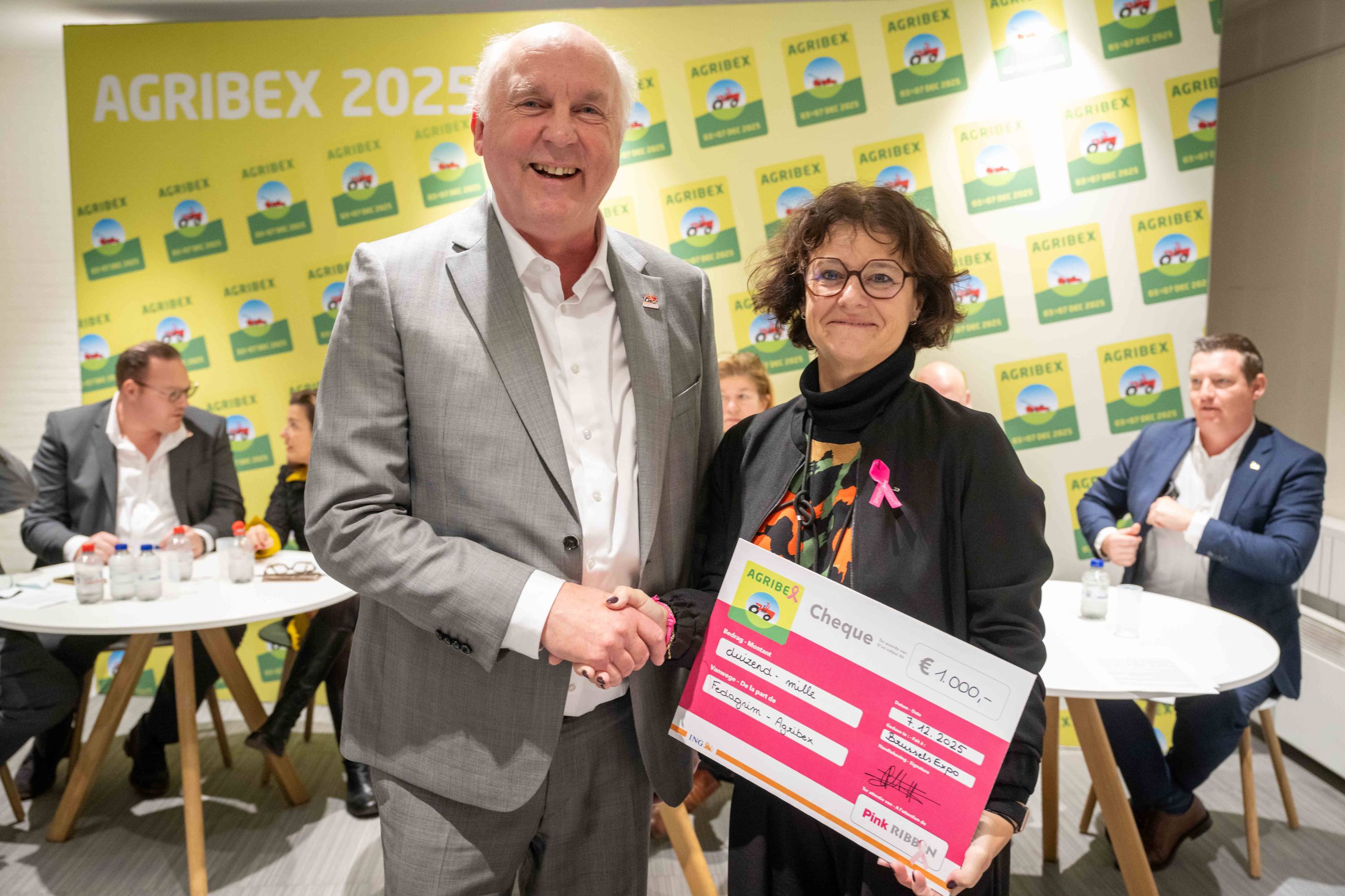 Les exposants ont également fait preuve d’une belle créativité, offrant de délicates attentions aux femmes venues visiter le salon ce jour-là. Une initiative solidaire, qui nous tient particulièrement à cœur, a par ailleurs été organisée au profit de Pink Ribbon. Pour lui donner encore plus d’impact, Fedagrim, la fédération organisatrice d’Agribex, a apporté un soutien supplémentaire avec un don à l’Association.