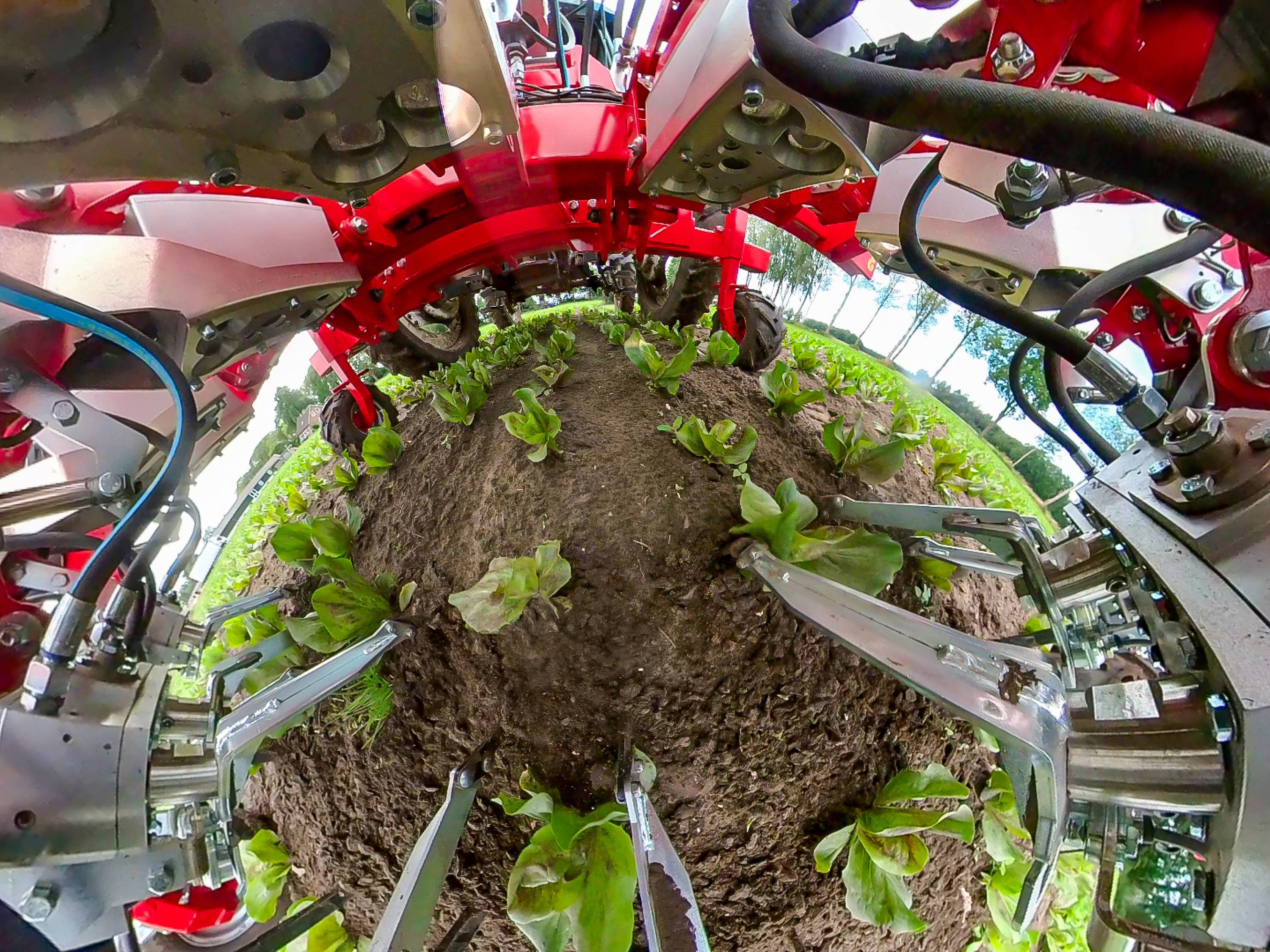 Chaque rang de culture est équipé d’une caméra qui commande les couteaux de binage hydrauliques. Ceux-ci travaillent des deux côtés de la ligne et éliminent les mauvaises herbes entre les plantes. Le système hydraulique robuste, durable et sans entretien réagit en une fraction de seconde. Cela permet de réduire la distance de sécurité par rapport à la plante à seulement un centimètre, selon la culture, la vitesse de travail et les conditions du sol.