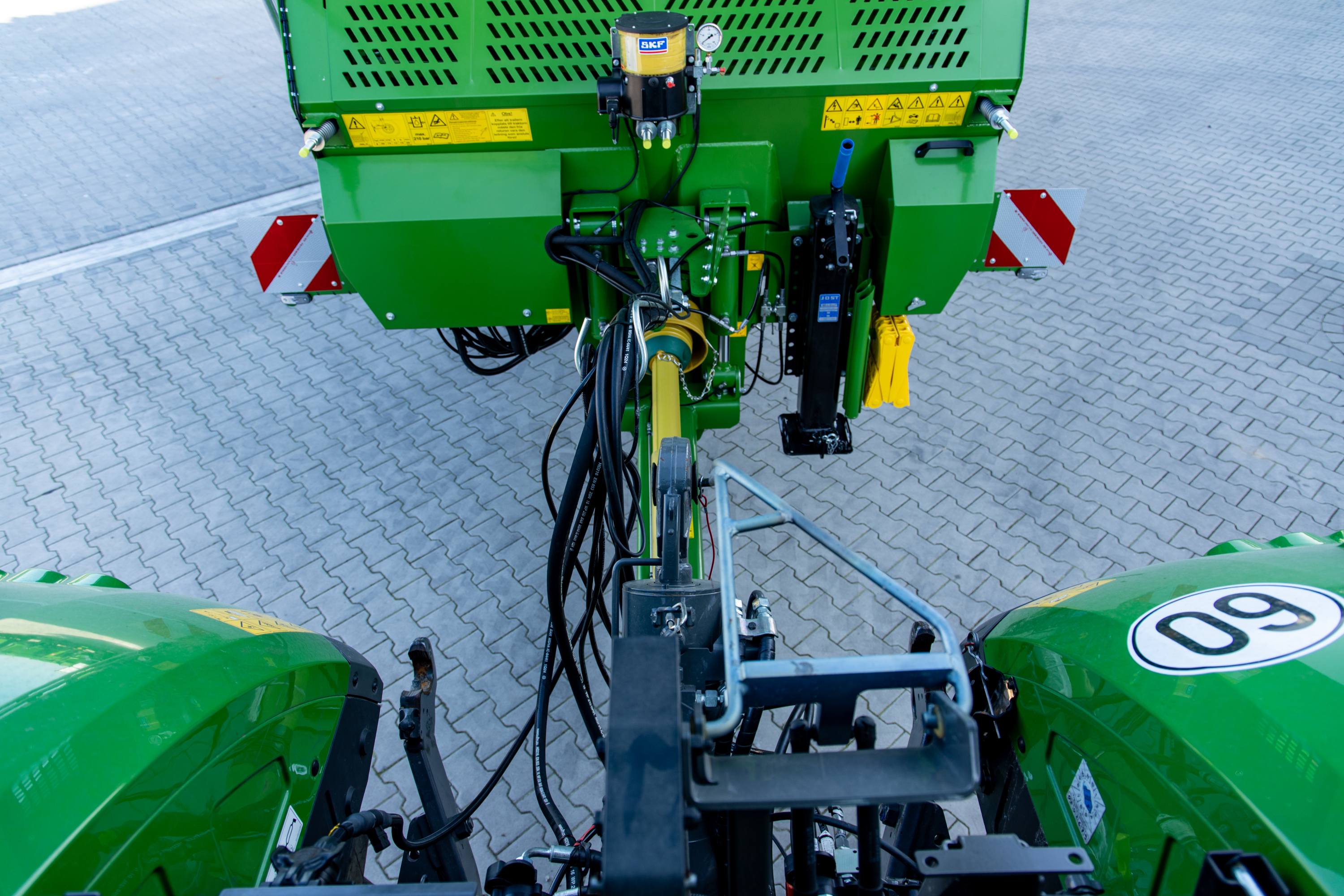 Zowel de hydraulische leidingen als de kabels zijn uniform, netjes en goed toegankelijk aangelegd.