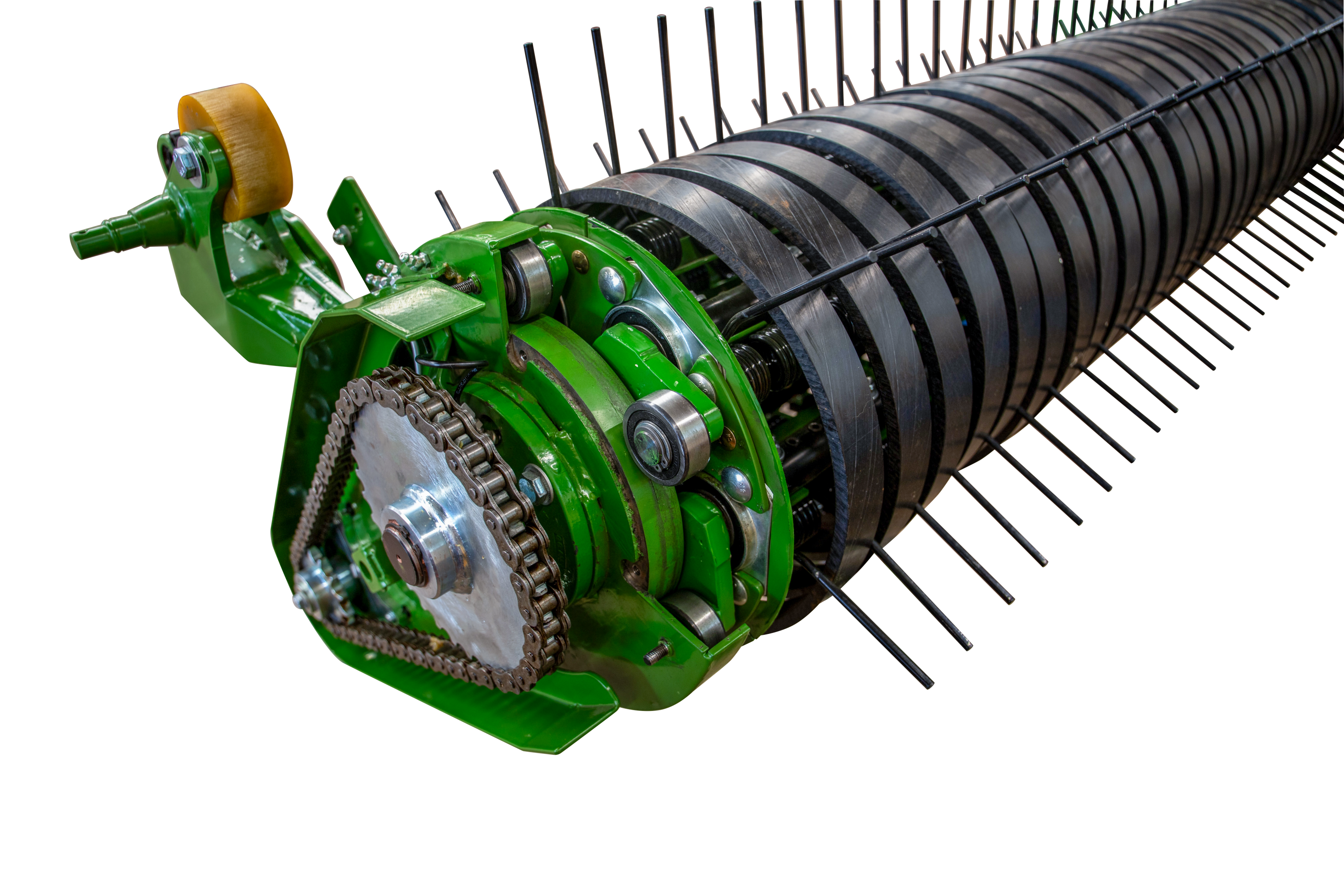 Met een 20 procent grotere diameter ten opzichte van het voorgaande model bieden de dubbele verende tanden een duidelijk hogere stabiliteit en langere levensduur – zelfs onder extreme gebruiksomstandigheden. De geoptimaliseerde verhouding tussen tanden en afstrijkers zorgt voor meer vrije ruimte en verbetert bovendien de rustige loop en de levensduur.